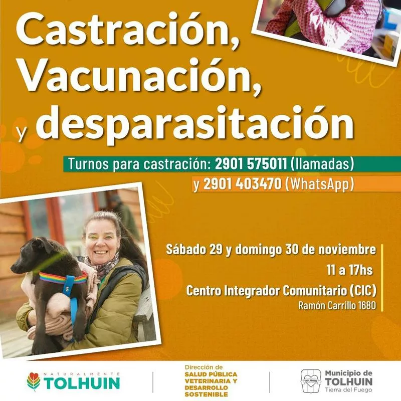 Durante la jornada, los perros y gatos podrán recibir estos servicios veterinarios. La castración se realizará únicamente con turnos previos, que los interesados pueden solicitar llamando al número 2901 575011 o enviando un mensaje de WhatsApp al 2901 403470. Esta modalidad busca organizar mejor la atención y garantizar la disponibilidad de recursos y personal. Por otro lado, la vacunación y la desparasitación se ofrecerán por orden de llegada, permitiendo que toda la comunidad tenga acceso a estos servicios esenciales durante toda la jornada.