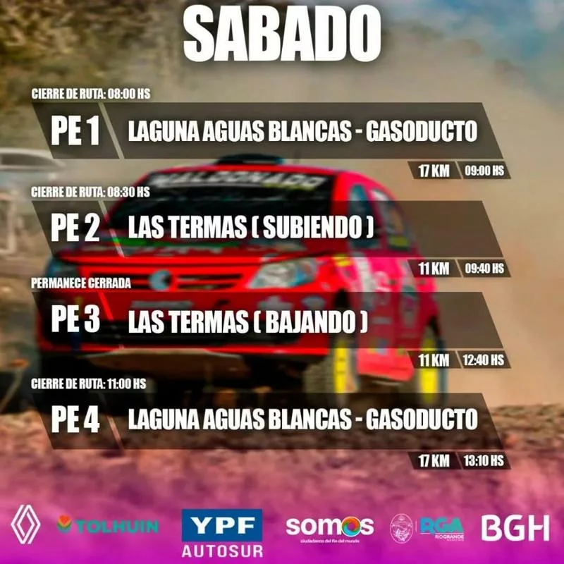 La tercera fecha del Campeonato Fueguino de Rally, organizada por APITUR, promete adrenalina y emoción en cada tramo. La competencia recorrerá rutas provinciales 27, conocidas como Aguas Blancas, y la 25, Las Termas, en un circuito que combina belleza natural y desafío deportivo. La competencia inicia a las 8:00 de la mañana y se extenderá durante dos días, con cierre de rutas y una intensa actividad en el corazón de Tierra del Fuego. Esta carrera no solo pone a prueba la destreza de los pilotos, sino que también enriquece las festividades del aniversario, resaltando la identidad y pasión local por el automovilismo.